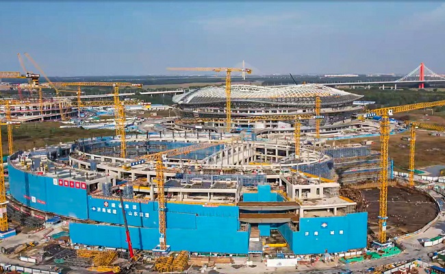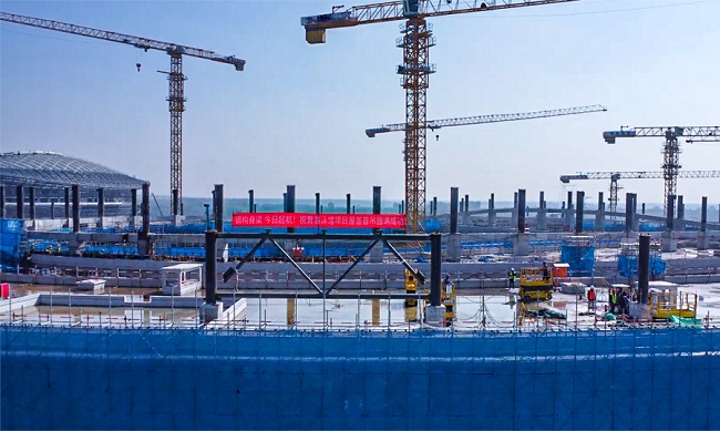 目前,項目總體進展順利,主體結(jié)構(gòu)均已按計劃節(jié)點完成,在今年6月實現(xiàn)了全面封頂。項目正進行室內(nèi)的二次結(jié)構(gòu)砌筑,穿插機電專業(yè)的管線預埋工作。并推進鋼結(jié)構(gòu)屋蓋的吊裝,計劃元旦前完成全部外圍鋼結(jié)構(gòu)屋蓋的吊裝工作。